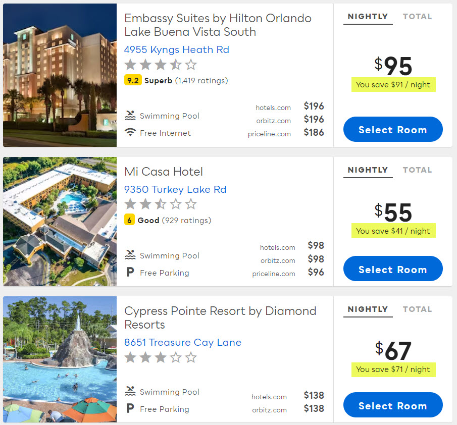 Because of a practice called rate parity, websites like Expedia and Booking.com must keep their prices the same as the prices on the hotel's main website. Our discounts are all protected behind our private members area, where we are allowed to offer deeply discounted rates that are not available to the general public, and you win!